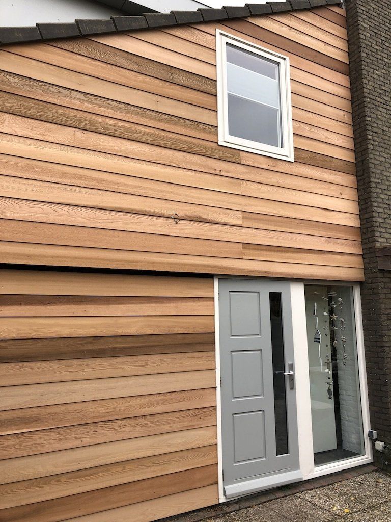 Op 19 november (2019) gaat Martien Boon beginnen met het met het oude bruine hout te vervangen voor nieuw red ceder potdeksel planken wat ons huis een heel andere uitstraling zal geven maar belangrijker nog, hierdoor wordt ons huis veel onderhouds armer. We zijn benieuwd hoe het er over een paar weken uitziet.