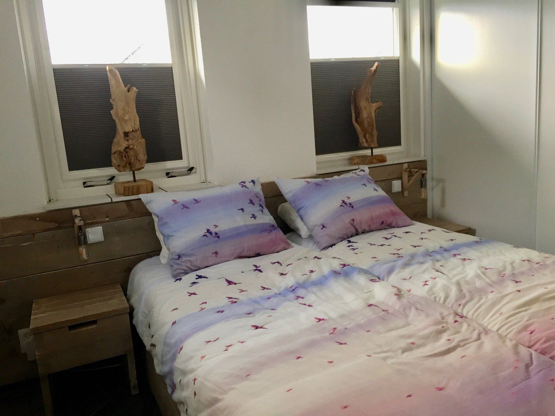 10-2-2018 Dit weekend het bed in elkaar gezet en de achterwand gebouwd, nachtkastjes er naast, lampen er aan, mooi dekbed er op en klaar. Duurde wat langer dan de vorige zin doet vermoeden maar het resultaat mag er zijn. Na wat gewinkel in den Burg en de Koog ook wat gevonden voor op de vensterbanken dus nu helmaal klaar.