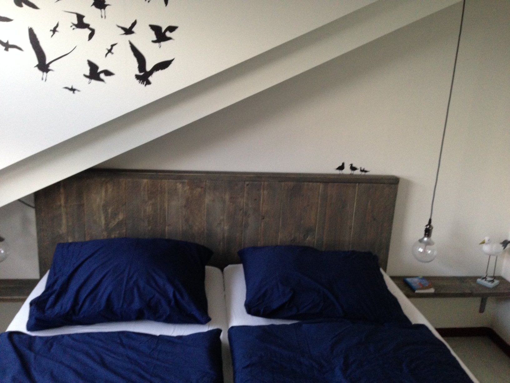 10-2-2018 Dit weekend het bed in elkaar gezet en de achterwand gebouwd, nachtkastjes er naast, lampen er aan, mooi dekbed er op en klaar. Duurde wat langer dan de vorige zin doet vermoeden maar het resultaat mag er zijn. Na wat gewinkel in den Burg en de Koog ook wat gevonden voor op de vensterbanken dus nu helmaal klaar.